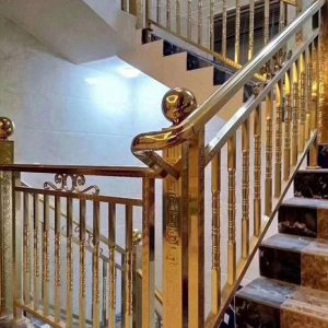 Mẫu Tay Vịn Cầu Thang inox Mạ Vàng Nghệ Thuật Đẹp Nhất 2024